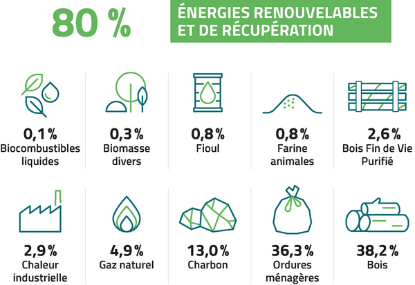 - 80 % d’énergies renouvelables et de récupération dans le mix énergétique